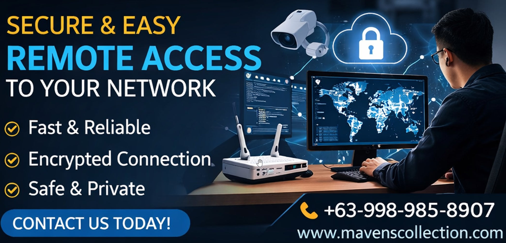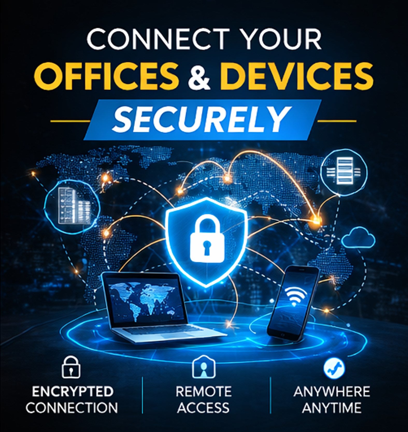 We provide secure remote network setup that allows you to connect to your office, devices, or servers from any location through a private and encrypted connection.