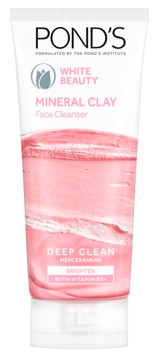 Ponds White Beauty Mineral Clay Facial Cleanser For the 1st time, Ponds revolutionizes its deep cleansing with mineral cleansing. Specially formulated with 100% natural origin Moroccan clay, which is enriched with minerals to give you 4X more impurities absorption power for daily deep cleansing. Combined with Vitamin B3+ technology, stimulating the appearance of millions of pristine skin cells to reveal your most untainted and bright true shade 4 times than normal charcoal