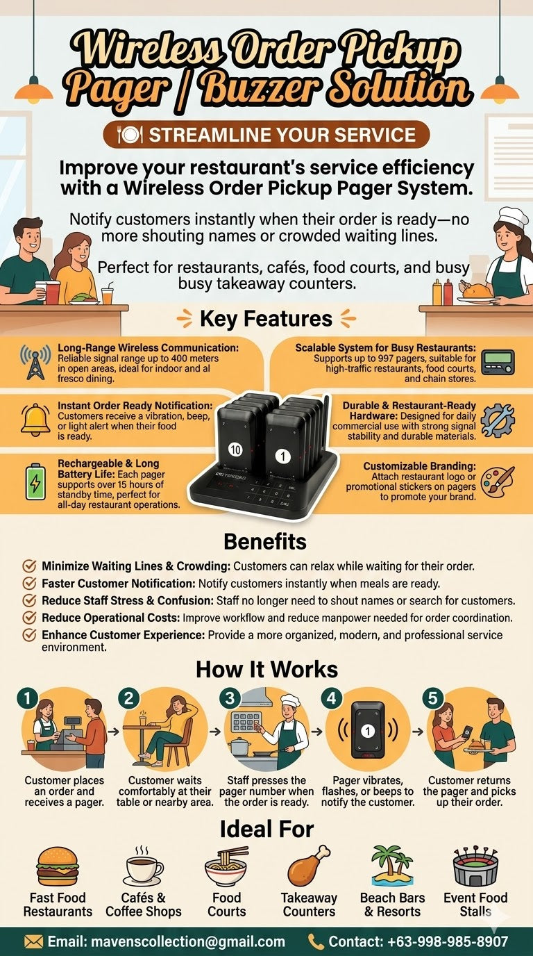 Improve your restaurant’s service efficiency with a Wireless Order Pickup Pager System.